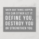 "Quando coisas ruins acontecem, você pode deixar: Defina você, destrua você ou fortaleça você", diz.