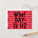 A confusão reina. Texto preto sobre fundo vermelho coberto com dias da semana.
