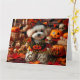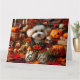 "Que todas as suas abóboras estejam brilhando" com um pequeno cão branco, crie um humor festivo de Halloween. Este cartão é adequado para amantes de cães. Deseje aos seus amigos e família um feliz Dia das Bruxas.