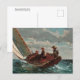 Um cartão-postal de belas artes com a pintura de Winslow Homer, artista norte-americano (1876) do movimento realismo Breezing (1873-1876), também conhecido como Fair Wind. Um grupo de garotos num veleiro no oceano chamado Gloucester, deixando vento nas velas.
