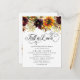 Belo arranjo de flores de outono decora o topo deste cartão postal de chá de panela. O buquê floral do outono inclui um girassol amarelo, rosa de burlu profundo e uma hidrangea branca. As folhas caídas rodeiam-nas. Seguem-se os detalhes do chá de panela. A parte de trás do cartão tem outro arranjo floral no topo. Em seguida, um local para adicionar uma mensagem pré-impressa. Todo o texto pode ser editado. Este cartão-postal de chá de panela faz parte da coleção Girassol e Borgonha. Ele contém os itens necessários para o seu chá de panela e suprimentos de festas.