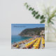 Cartaz da praia em frente à estação ferroviária de Monterosso, Ligúria, em Itália.