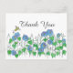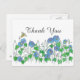 Um obrigado bonito que você posta, decorado com flores gloriosas azuis da manhã crescendo ao longo de uma cerca branca de piquete e uma abelha de mel desenhada em caneta preta e tinta com aquarela.