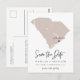 Este viagem guardar o cartão postal apresenta um mapa embaçado da Carolina do Sul e suporte a cartão postal. Altere facilmente as cores e mova o coração para realçar seu destino. Edite o texto *mais* para corresponder às suas necessidades e adicione facilmente uma mensagem especial ao verso do convite.