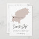 Este cartão postal de save the date temático de viagem apresenta um mapa de Ibiza cor-de-rosa e parte de trás de postal. Altere facilmente as cores e mova o coração para destacar seu destino. Edite a *maioria* do texto para atender às suas necessidades e adicione facilmente uma mensagem especial no verso do convite.