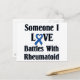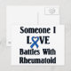 Artrite reumatoide design. Apoio e sensibilização para a artrite reumatoide, uma doença autoimune dolorosa e debilitante. Apresenta a fita azul RA para a conscientização e as palavras "Alguém que eu amo batalhas com Reumatoide"