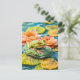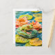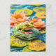 Cartão Postal Rã Verde em Folhas de Lótus em Lago