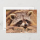Pensando em você Raccoon Mantenha contato com cartões postais personalizados do Zazzle! Adicione a sua imagem favorita a um cartão postal de vazio ou diga "oi" com um design pré-existente. Salve papel e envie uma nota sem desperdiçar envelopes! 4,25" x 5,6" (retrato) ou 5,6" x 4,25" (paisagem). Impresso no estoque da placa de ultra-peso (120 lb.) com acabamento de brilho. Sem ordem mínima. Obtenha selos personalizados para combinar! A taxa de postais de um cartão postal é de $0,34