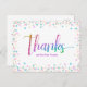 Aqui está uma maneira divertida e cintilante para a aniversária mostrar seu apreço a todos que apoiaram seu evento de marco! Envie este obrigado estonteante, simples, festivo, moderno, personalizado que você faz. A tipografia do arco-íris com escrita brilhante, juntamente com turquesa festiva, rosa púrpura e confete dourado, sobrepõe um fundo branco. Na frente, personalize com o nome dela. Digite uma nota personalizada no verso ou deixe o vazio para a mensagem manuscrita. Também adicione seu endereço de devolução. Excelente para a vanguarda que ama o brilho e o brilho modernos e garante que adicione um toque na moda à sua correspondência! Basta digitar o nome dela na frente, adicionar uma nota personalizada e um endereço de retorno na parte traseira, e você pode personalizar facilmente este obrigado que você faz. Por favor, me mande mensagens com quaisquer perguntas ou solicitações.