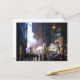 Capture a energia cativante do Nova Iorque sob uma chuva macia e nebulosa numa noite escura. A frente do cartão mostra uma robusta cena da rua NYC à noite, com táxis amarelos icônicos refletindo em poças cintilantes no asfalto molhado. Os arranha-céus piscam acima, suas luzes se desfocaram em um brilho vibrante pela garoa. Os pedestres de guarda-chuva tecem passagens cruzadas, acrescentando uma dica de romance ao humor ambiente atmosférico. Perfeito para aqueles que amam a vida urbana, as noites chuvosas, ou a NYC, esta carta traz um toque de magia da cidade!