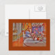 Aquarela mostrando garotinha trabalhando em um quarto com cacto de Natal na frente. "1914 Interior com Cactus" Pintura de Vintage do artista sueco Carl Larsson.