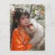 Cartão Postal Rapariga com macaco chinês Zodiac Art