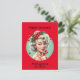 Cartão de Natal retrô com a garota de alfinete dos anos 50 em bagas ocas. Todo texto é editável.