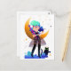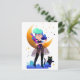 Cartão Postal Rapariga de Cabelo Azul com Gato Preto