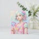 Enviando uma explosão de capricho com este cartão postal com a arte de retrato gerada por IA - uma garota encantadora segurando um pirulito em matizes sonhadoras e pastéis! Essa criação encantadora captura a essência dos prazeres sugestivos e do encanto imaginativo.