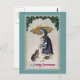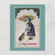 Um Feliz Natal Uma garota em um casaco roxo tem suas mãos cheios com um gato, um guarda-chuva, um cesto de nãos-do-esquecimento e um envelope selado com cera vermelha. Um dachshund também gostaria de ser transportado preferencialmente do que caminhar pela neve neste cartão postal de natais vintages de 1911.