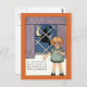 Cartão Postal Rapariga Janela Bruxa Crescente Lua Bat