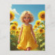 Cartão Postal Rapariga no campo da arte do girassol