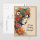 Cartão Postal Rapariga retrô com flores no cabelo