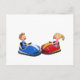 Cartão Postal Rapaz e garota de cartoon em carros de Pára-choque