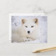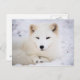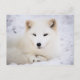 Foto de uma raposa cártica branca, descansando na neve. O animal tem pele branca e olhos castanhos e está olhando para você. Um verdadeiro diva! Carimbo correspondente: com