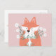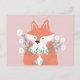 Este cartaz encantador apresenta uma ilustração adorável de uma raposa, projetada com uma paleta de cores quente e convidativa. A raposa é representada de forma estilizada com um casaco de laranja macio, uma expressão doce, e olhos fechados e satisfeitos, como se estivesse desfrutando de uma brisa suave. Está cercado por um verde branco e flores brancas que acrescentam à serena e agradável vibração da ilustração. O fundo é um rosa sutil, fornecendo um contraste suave que destaca a raposa e o design floral. Um aspecto notável deste cartão postal é a capacidade de personalizar o dorso, oferecendo espaço para uma mensagem personalizada, endereço ou qualquer outro texto que o remetente queira incluir. Esse recurso de personalização torna o cartão postal perfeito para várias ocasiões, de uma nota atenciosa para um amigo ou amado para um convite de festas ou anúncio único. Com a sua mistura de trabalho de arte carinhoso e pessoal toque, este Cartão-postal da Raposa Cuta certamente trará um sorriso à cara de qualquer um.