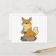 Cartão Postal Raposa com xícara de café