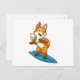 Cartão Postal Raposa como Surfista com Prancha de Surfe