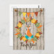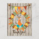 Este Cartaz de outono, obrigado! apresenta uma raposa tribal bonita sentada numa coroa de folhas coloridas de outono. Há também uma faixa de revestimento com bolotas e um fundo de madeira falsa.