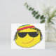 Rasta emoji é um estilo emoticon Rasta Esta cara tem estilo junto com o rosto amarelo e o sorriso vermelho grande. Ele veste um par de tons com o logotipo do símbolo de paz da CND no tema rasta e um chapéu vermelho, amarelo e verde com pavões pendurados. Uma imagem divertida e afetuosa.