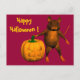 Rato doce segurando uma cabeça de abóbora para o Halloween