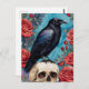 Cartão Postal Raven Sobre O Fundo Do Teto De Rosas vermelhas Crâ
