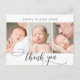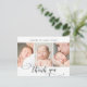 Simples Moderno Script de Caligrafia Elegante 3 Colagem de Fotografias Recém-Nascido, Obrigado Cartão-Postal De Anúncio De Nascimento. Apresenta um belo texto "obrigado você" em um roteiro de letra de tipo tipografia ou caligrafia escrita à mão em preto e branco. Excelente para bebê ou menina. No verso, uma mensagem pessoal pré-feita. Fácil de personalizar com sua foto de bebê e detalhes.