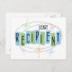 Um dos nossos designs mais populares é o símbolo do motel retrô com Destinatário do Coração cercado de ovais e estrelas. No verso está o design do cartão postal habitual, mas com "Eu recebi a dádiva da vida" no fundo. Estes seriam bons cartões para enviar o ano todo para Obrigado, Hellos e qualquer outra coisa que você possa pensar.