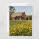Um amante da fazenda vai gostar de enviar ou receber o Red Barn rústico e cênico com Cartão-Postal de Flores Amarelas. Este charmoso cartão temático personalizado apresenta uma fotografia fazenda de um celeiro vermelho rústico com flores silvestres amarelas no primeiro plano localizado no centro rural de Illinois.