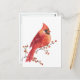 Cartão Postal Red Cardinal Comendo Berries Ilex