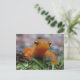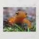Este postal apresenta o Red Eft, o estágio juvenil terrestre do Eastern Newt (ou Newt de manchas vermelhas). Este curioso companheiro laranja com manchas vermelhas acabou de emergir da lagoa para passar dois ou três anos na terra antes de voltar para a água como uma salamandra adulta. Dentro estão dois red efts menores.