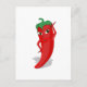 Um personagem de desenho animado de pimenta vermelho e quente. Design original. Cartão postal bonito para amantes de comidas picantes.