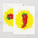 Um personagem de desenho animado de pimenta vermelho e quente. Design original com fundo de tela de tinta amarela. Cartões postais personalizados. Ideia do presente.