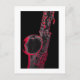 Uma imagem dramática de um saxofone em preto-e-branco com realces vermelhos, sobre fundo preto. Excelente para amantes sax!