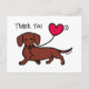 Red Smooth Haired Dachshund Smiling Heart Dachshund Obrigado cartão-postal pelos fãs Doxie. Um desenho animado criado por Naomi Ochiai, do Japão. Doxie está entregando um Balão de Coração Vermelho a alguém.