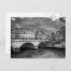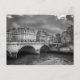 Uma fotografia a preto e branco do rio Sena e uma ponte em Paris, França.