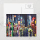 Reprodução de uma pintura acrílica original. Uma cidade de táxis amarelos e natações leves neon através de uma noite úmida e fria.