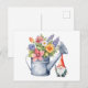 Cartão Postal Regador com Flores e Gnome de Jardim