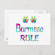 Os amantes de gatos birmaneses vão desfrutar desta design colorida com as patas de gatos e com as palavras Regra birmanesa.