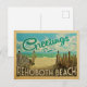 Esta design do cartão postal de Rehoboth Beach apresenta uma praia arenosa com uma bela água turquesa oceânica e acima do mar, um céu azul com nuvens brancas onduladas. No estilo viagens vintage.