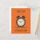 Esta placa de posto tem uma ilustração simples do relógio da mesa sobre o fundo laranja sólido com o texto personalizável "levante-se, levante-se".
