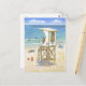 Numa tarde ensolarada e ocupada, um salva-vidas solitário procura o litoral do seu posto de vigia de madeira. :: Watercolor Original por Barbara Bayer