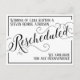 Reprogramando o design de lançamento caso um evento especial deva ser adiado. Este modelo pode ser usado para alterar os planos de qualquer evento. O exemplo é dado para o adiamento de um casamento, mas pode ser usado para eventos como festas de aniversário, reuniões, eventos da empresa, aniversário, aposentadoria, etc., apenas por favor personalize o texto.