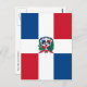 Bandeira da República Dominicana. A bandeira da República Dominicana apresenta uma cruz branca centrada que se estende até as bordas e divide a bandeira em quatro retângulos - os de cima são azuis (lado do assento) e vermelhos, e os de baixo são vermelhos (lado do assoalho) e azuis. Um grande casaco de braços com um escudo com a bandeira design e apoiado por um galho (esquerda) e um fronte de palma (direita) está no centro da cruz; acima do escudo, uma fita azul exibe o lema nacional: Dios, Patria, Libertad (Deus, Pátria, Liberdade). Abaixo do escudo, as palavras República Dominicana aparecem em uma fita vermelha. No centro do escudo, flanqueado por três lanças (duas delas segurando bandeiras dominicanas) de cada lado, está uma Bíblia com uma pequena cruz acima dele e que dizia ser aberta ao Evangelho de João, quer para o capítulo um, quer para o capítulo 8, versículo 32, que diz Y la verdad nos hará libre (e a verdade o fará livre).